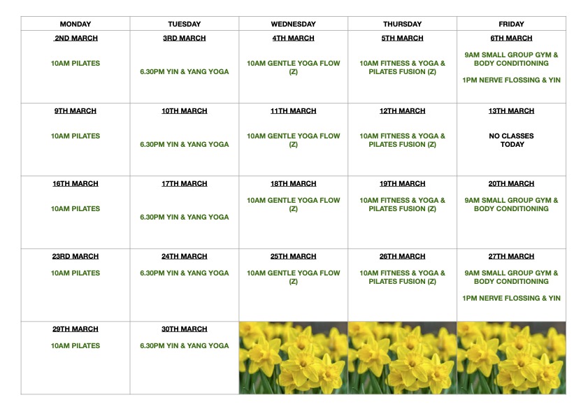 (Z) denotes that the class is also available via Zoom. You will receive the Zoom link in your booking confirmation.